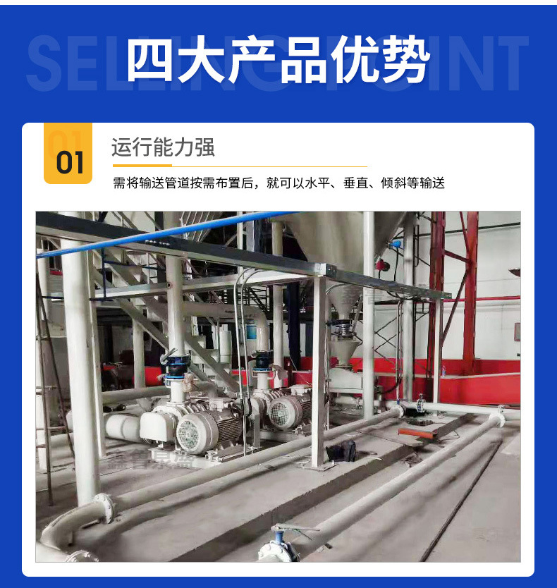 該系統(tǒng)初端約有10m/s的啟動(dòng)速度,尾端達(dá)到約22m/s的高速,因而氣流速度較高。輸送管道初始端壓力通常低于0.1MPa,而尾端則與大氣壓基本接近。稀相輸送的介質(zhì)一般采用空氣或氮?dú)?,物料在管道中呈懸浮狀態(tài),輸送當(dāng)量距離*長(zhǎng)達(dá)百米。