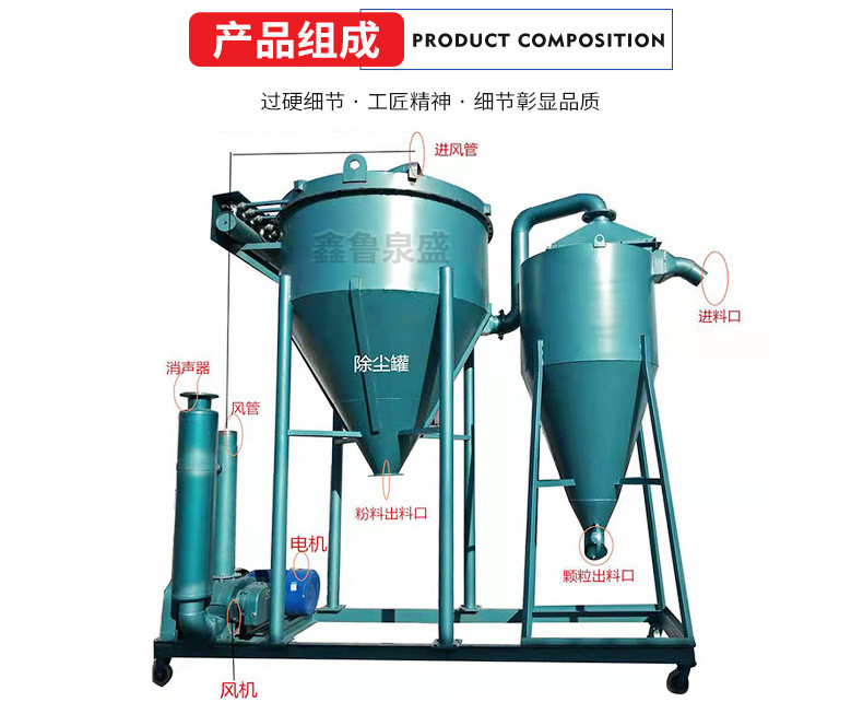 其主要組成部件為混合室、吸嘴、星型給料閥、旋風(fēng)分離器、除塵器、羅茨鼓風(fēng)機(jī)、電控柜等。